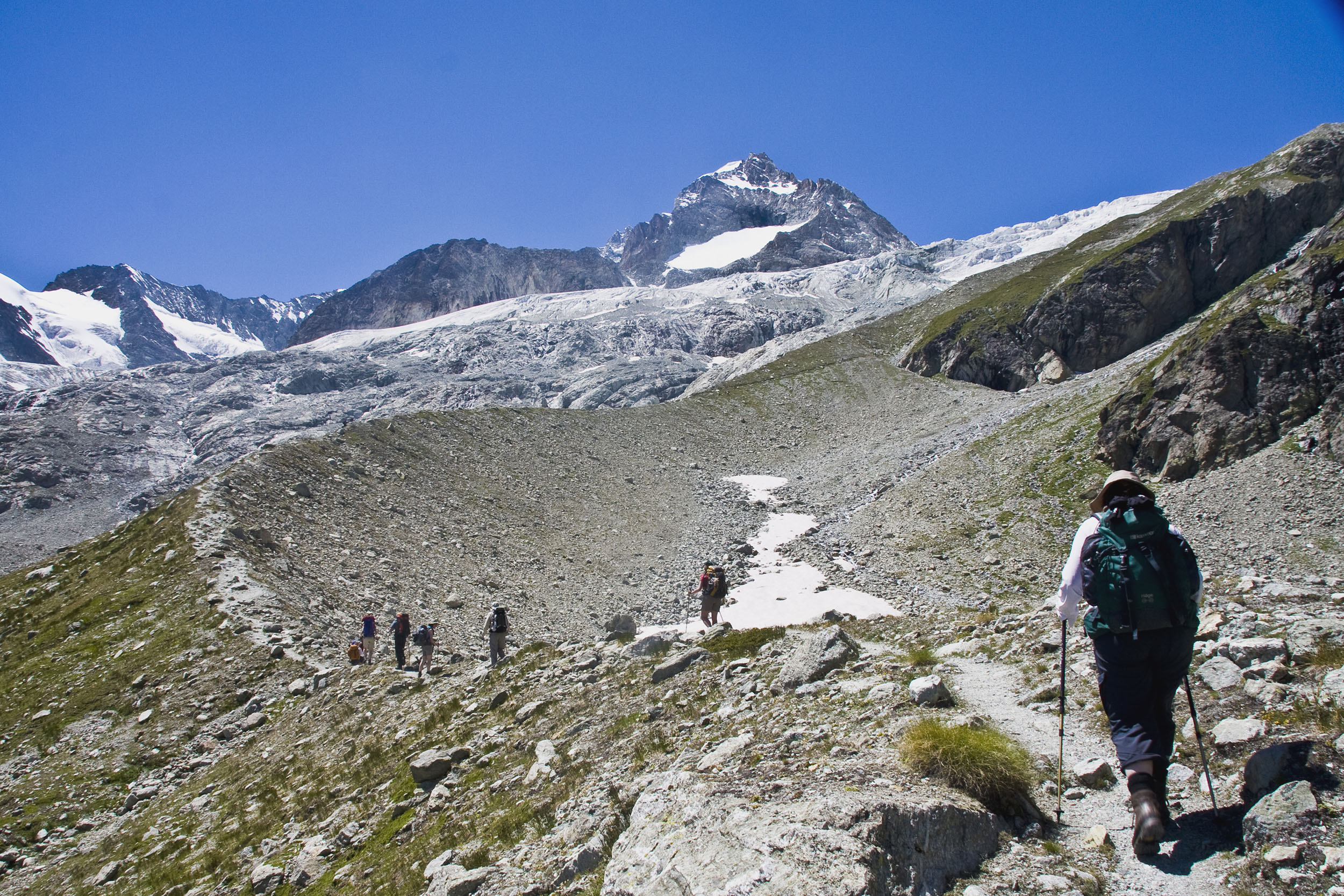 In truth there are so many stunning peaks in the area and on this 9-day circuit you’ll see twenty-five 4000 m Alpine summits. Some sections are of the route are quite remote and although we are in the heart of the Alps, you will see few other trekkers. This is a superb hike for seeing the wilder, more out-of-the-way parts of the Alps.