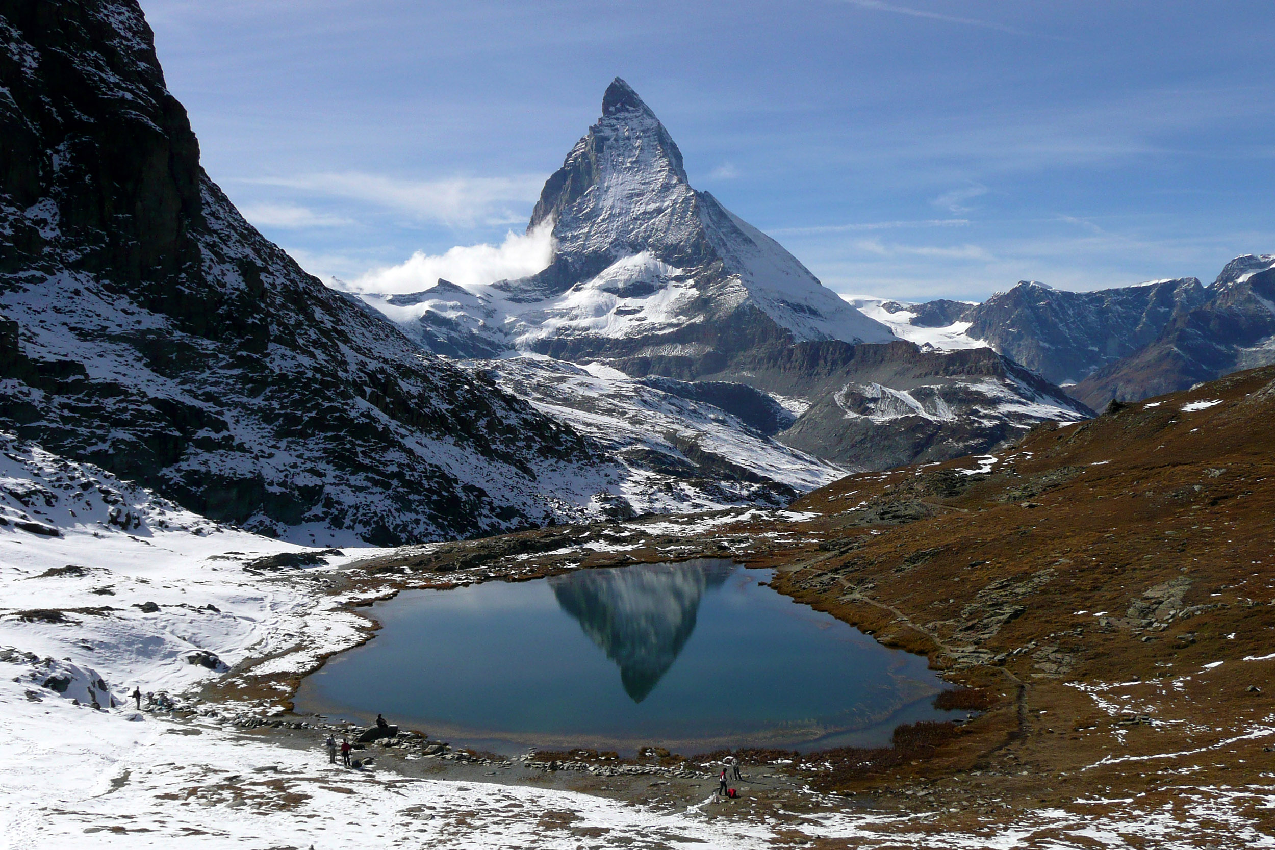 Matterhorn stands alone at 4,787 m high straddling the border of Switzerland and Italy making it the perfect mountain to walk around.